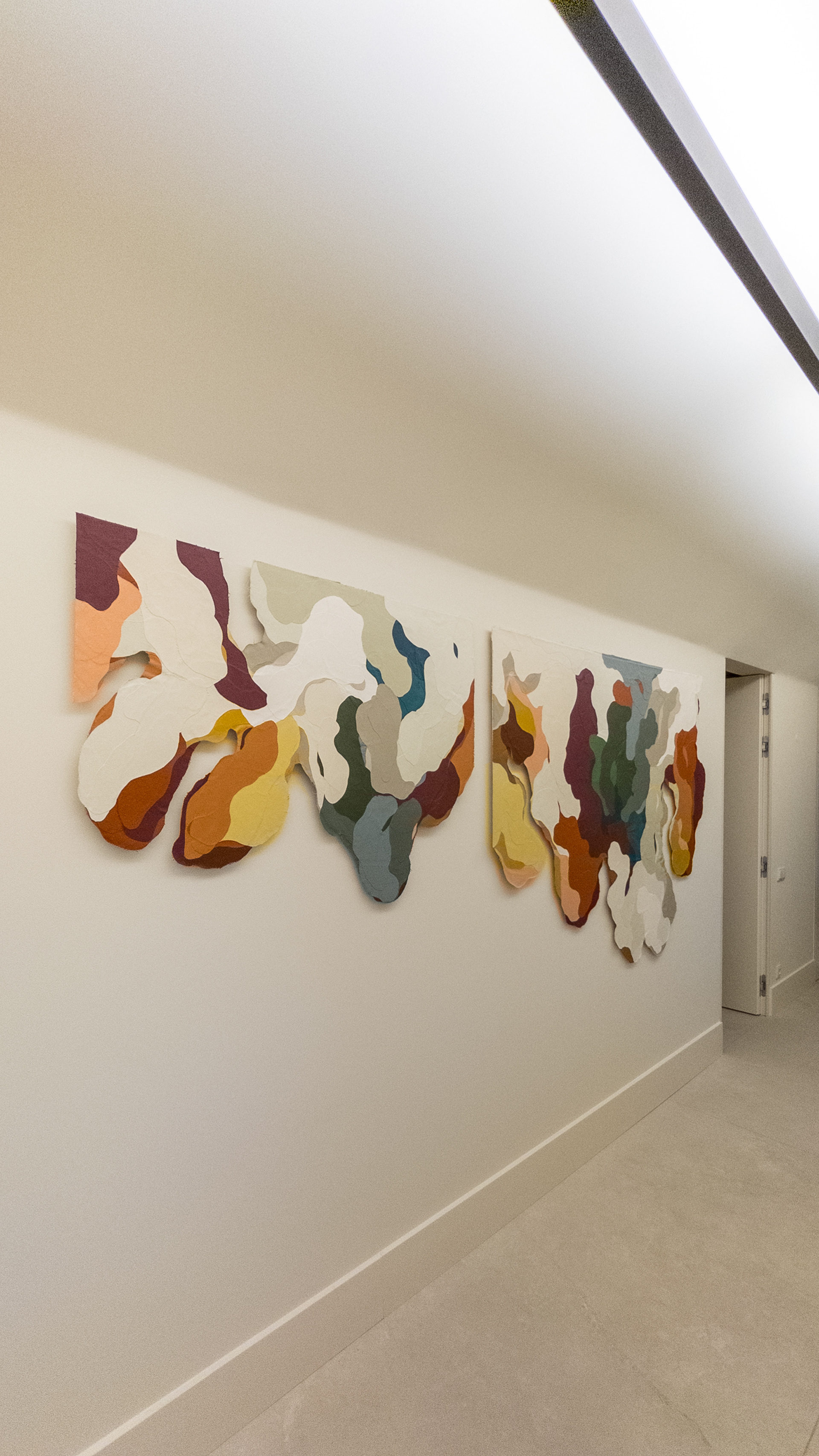 Tinta acrílica, têmpera vinílica e gesso acrílico sobre colagens de tela de algodão e estopa de linho.