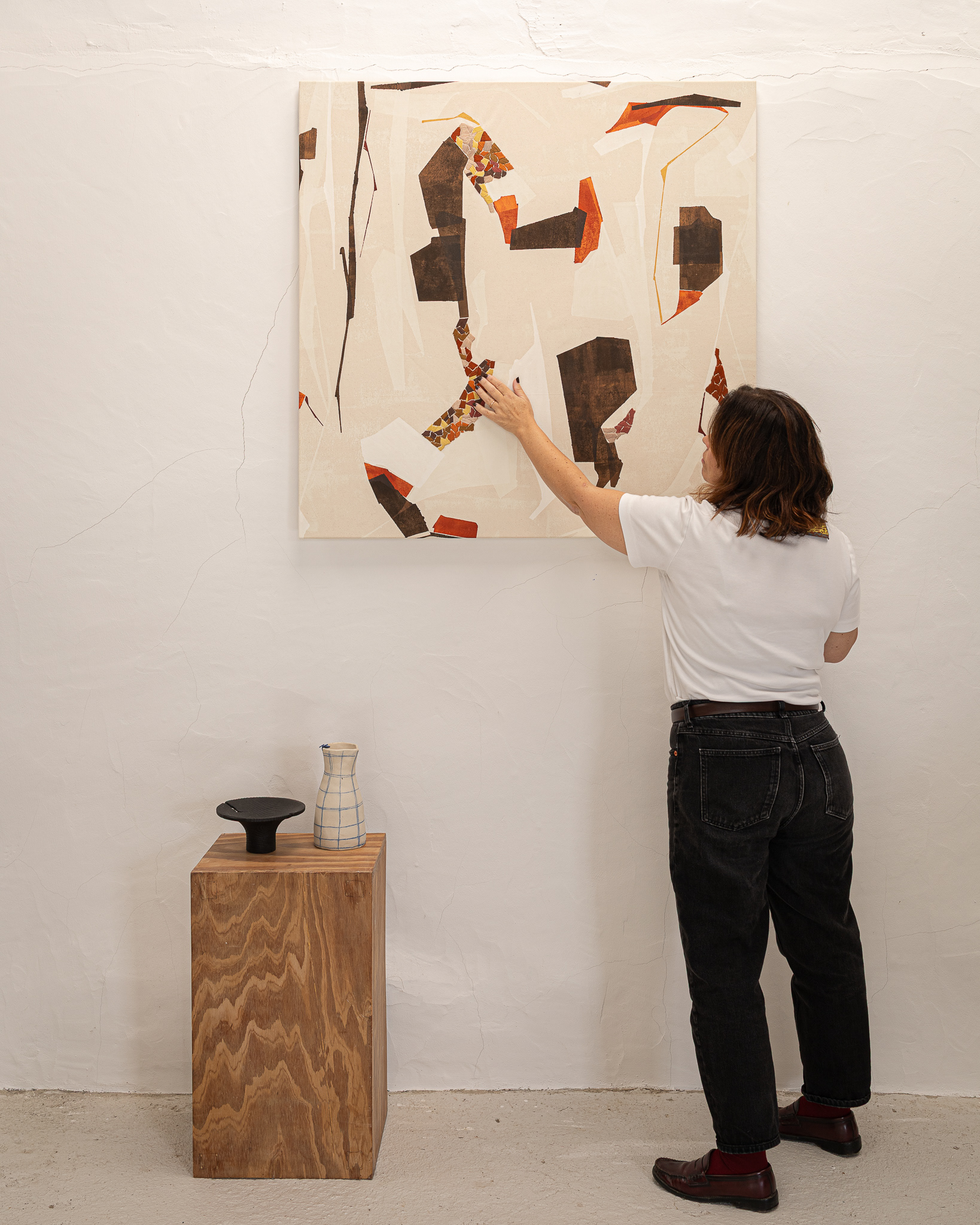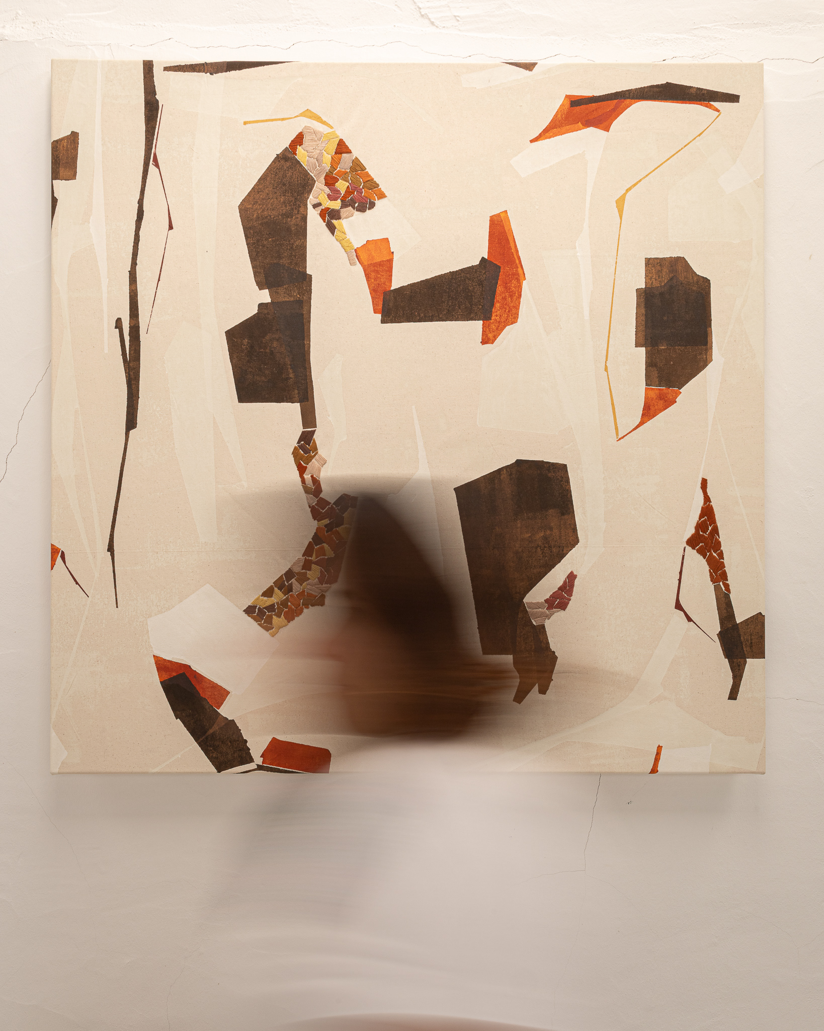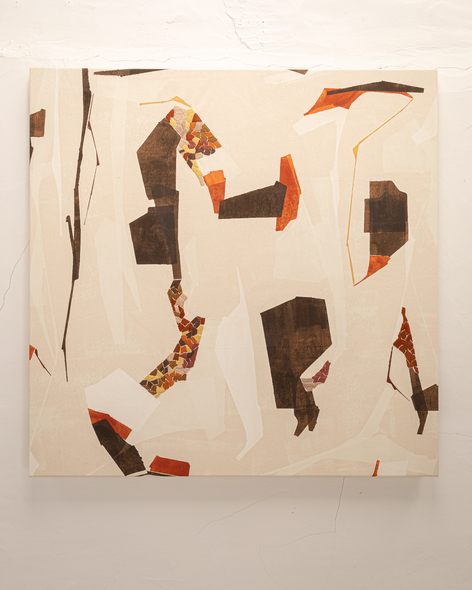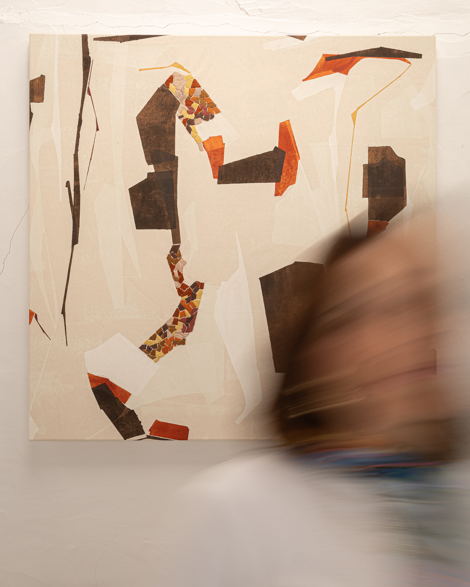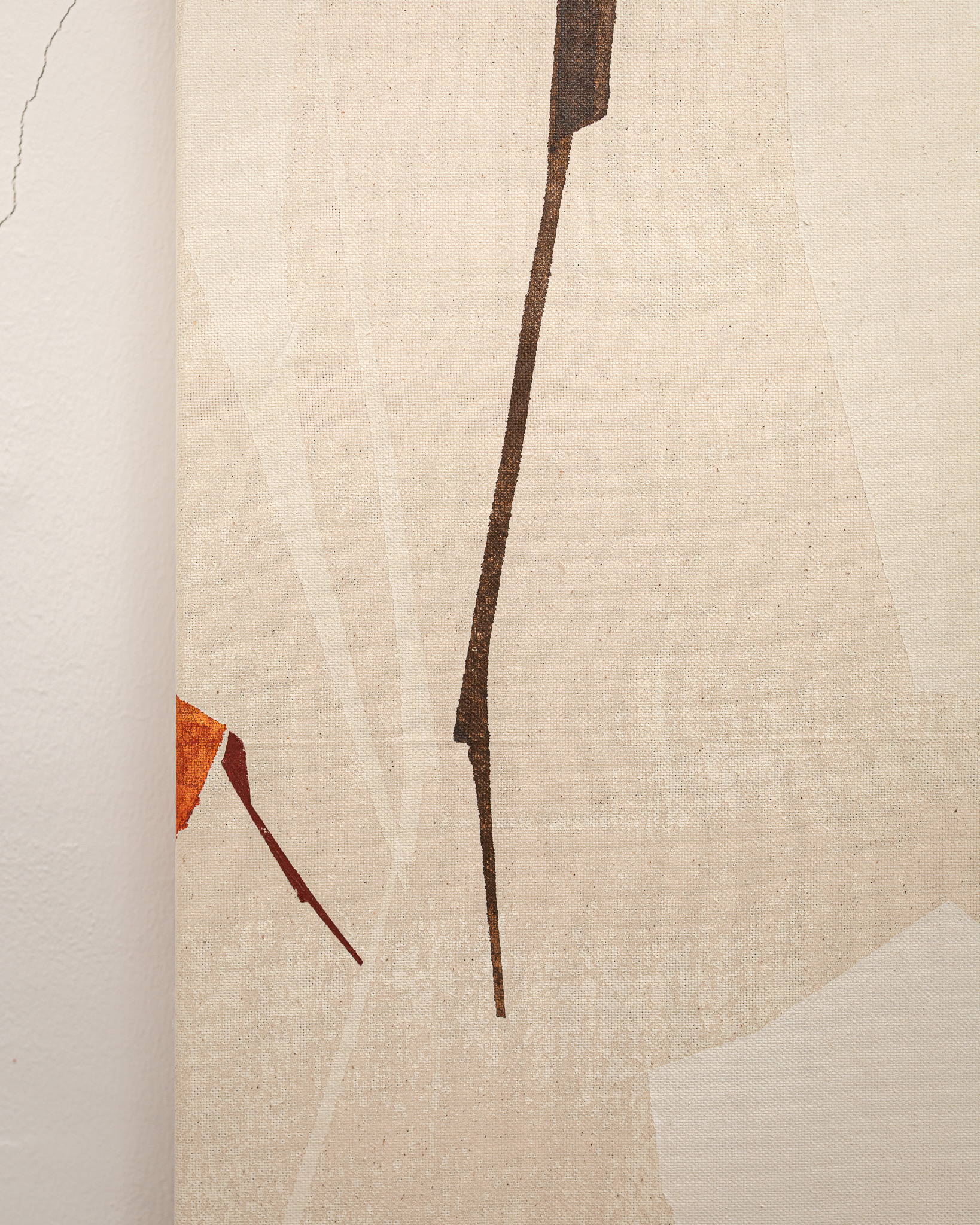 Tinta acrílica, têmpera vinílica e bordados com fios de algodão sobre linho esticado em grade de madeira.