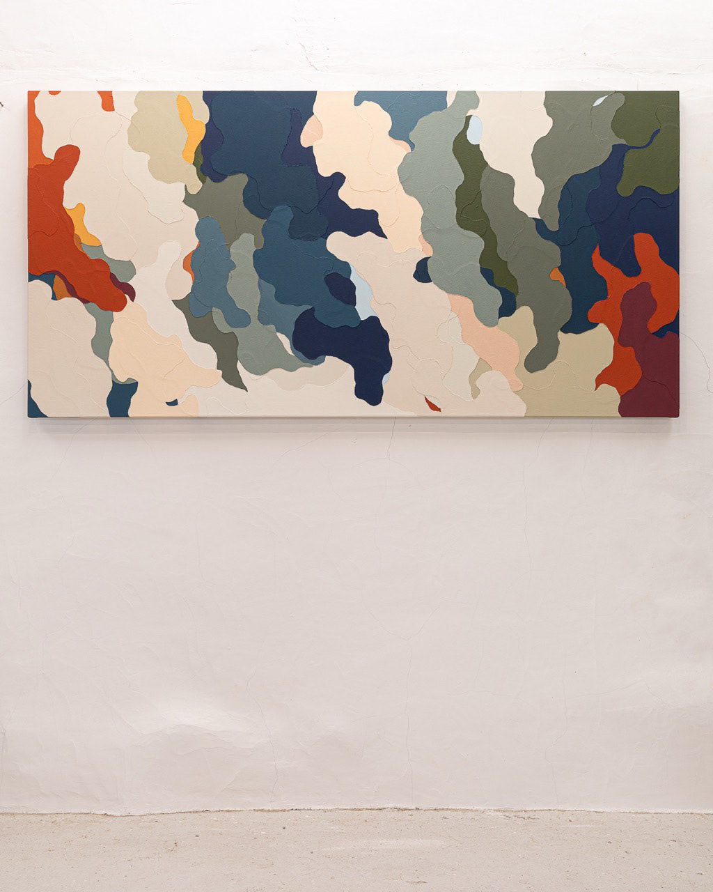 100cm x 200cm Tinta acrílica, têmpera vinílica e gesso acrílico sobre colagens em tela de algodão esticada em grade de madeira. Peça única, assinada, com certificado de autenticidade