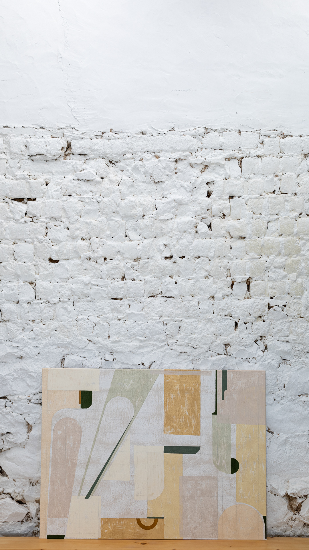 Tinta acrílica, tempera vinílica, gesso, lápis de carvão sobre estopa de linho esticada em grade de madeira