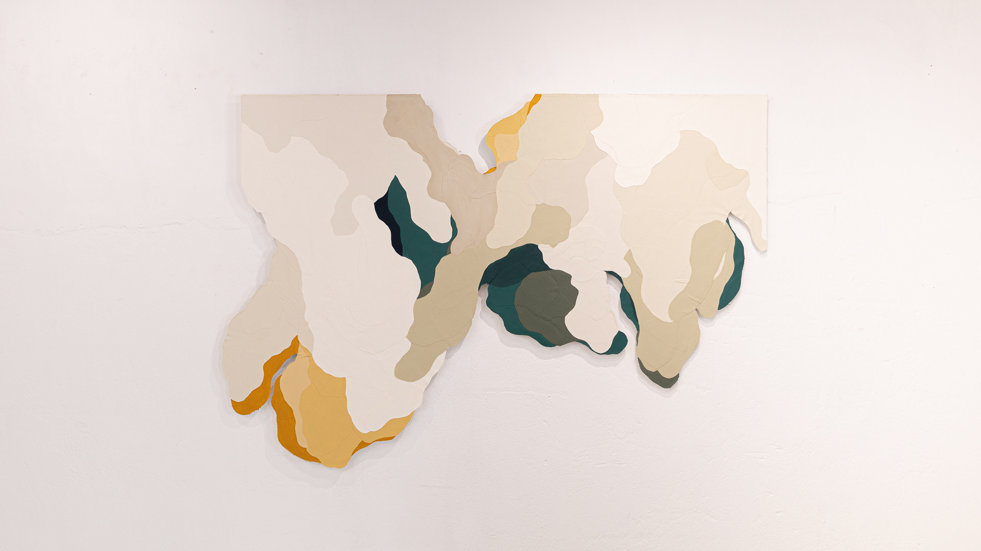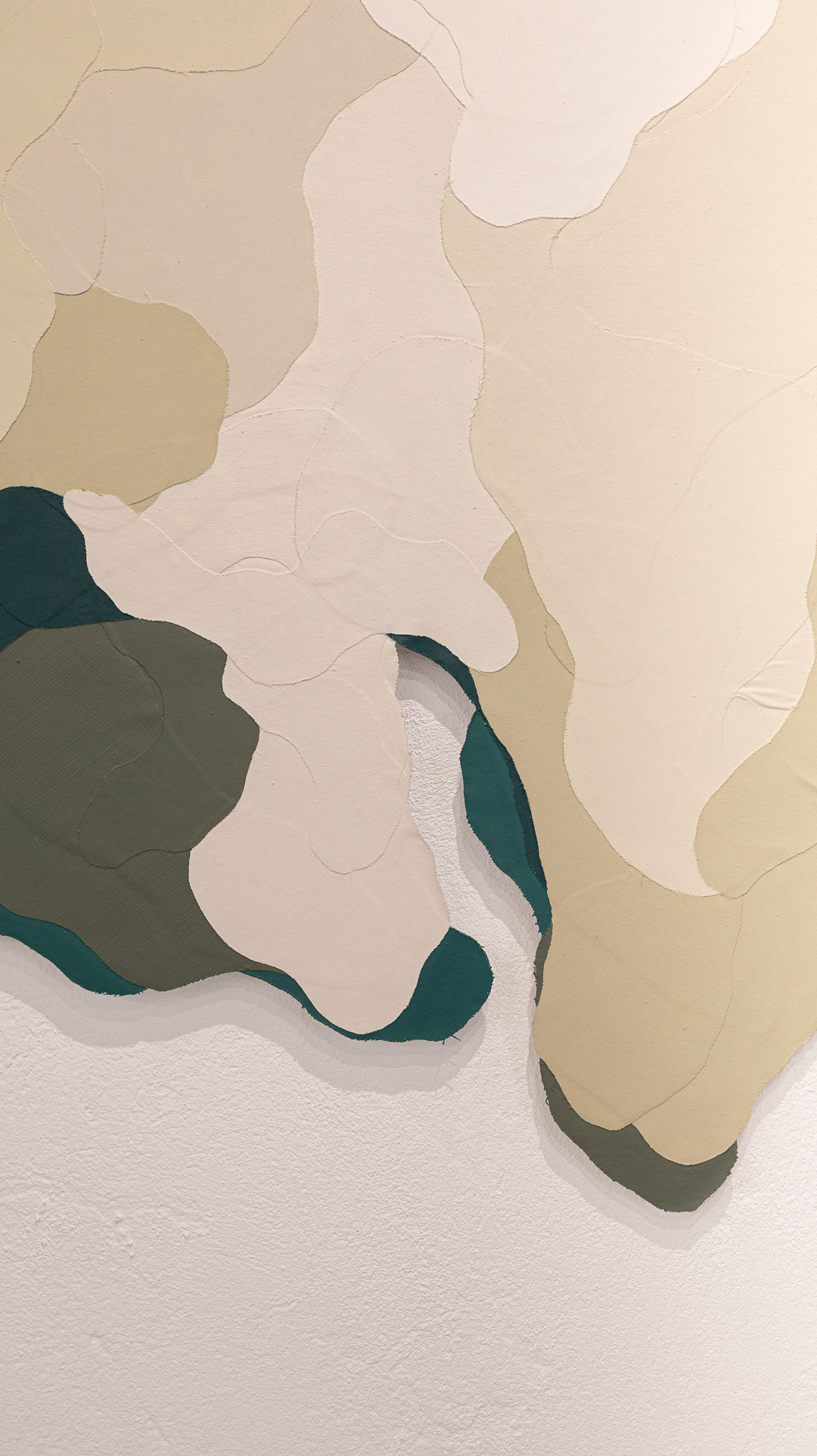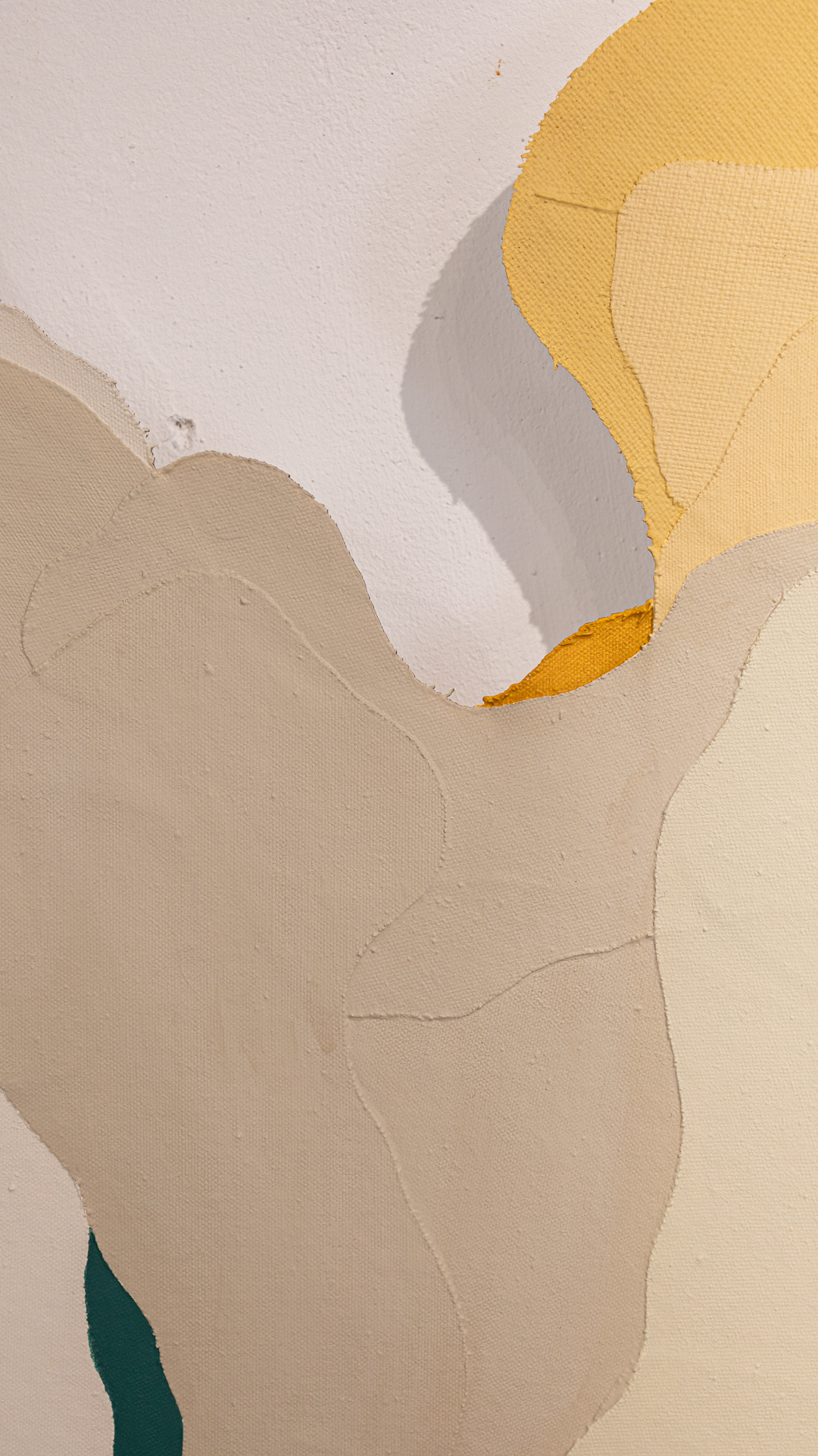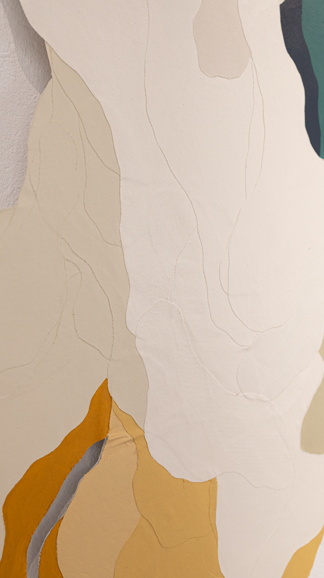 Tinta acrílica, têmpera vinílica e gesso acrílico sobre colagens de tela de algodão e estopa de linho. Montada numa estrutura de madeira.