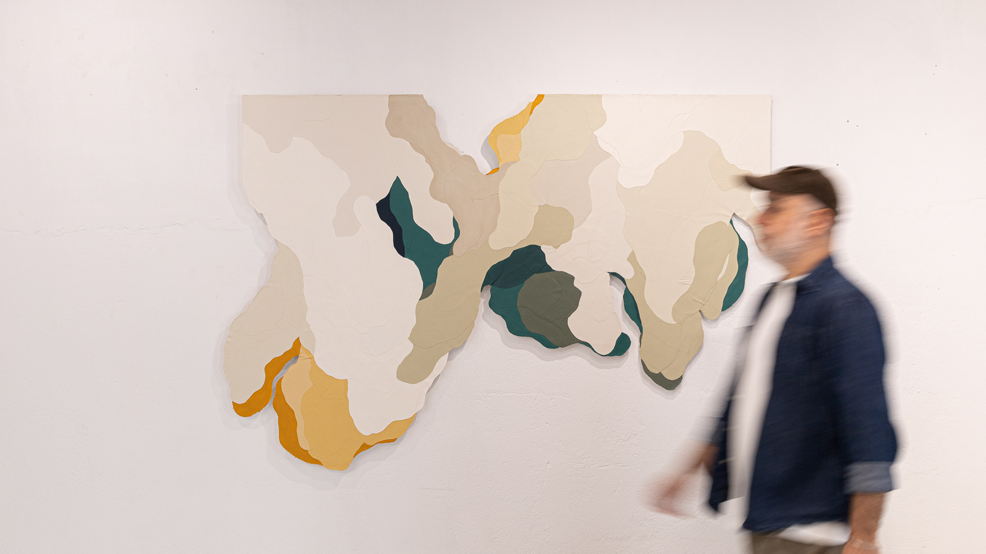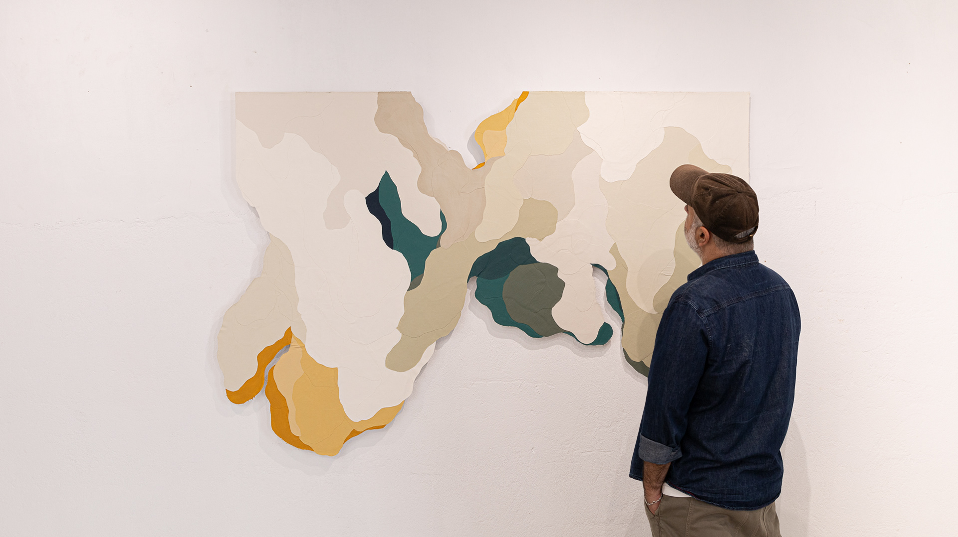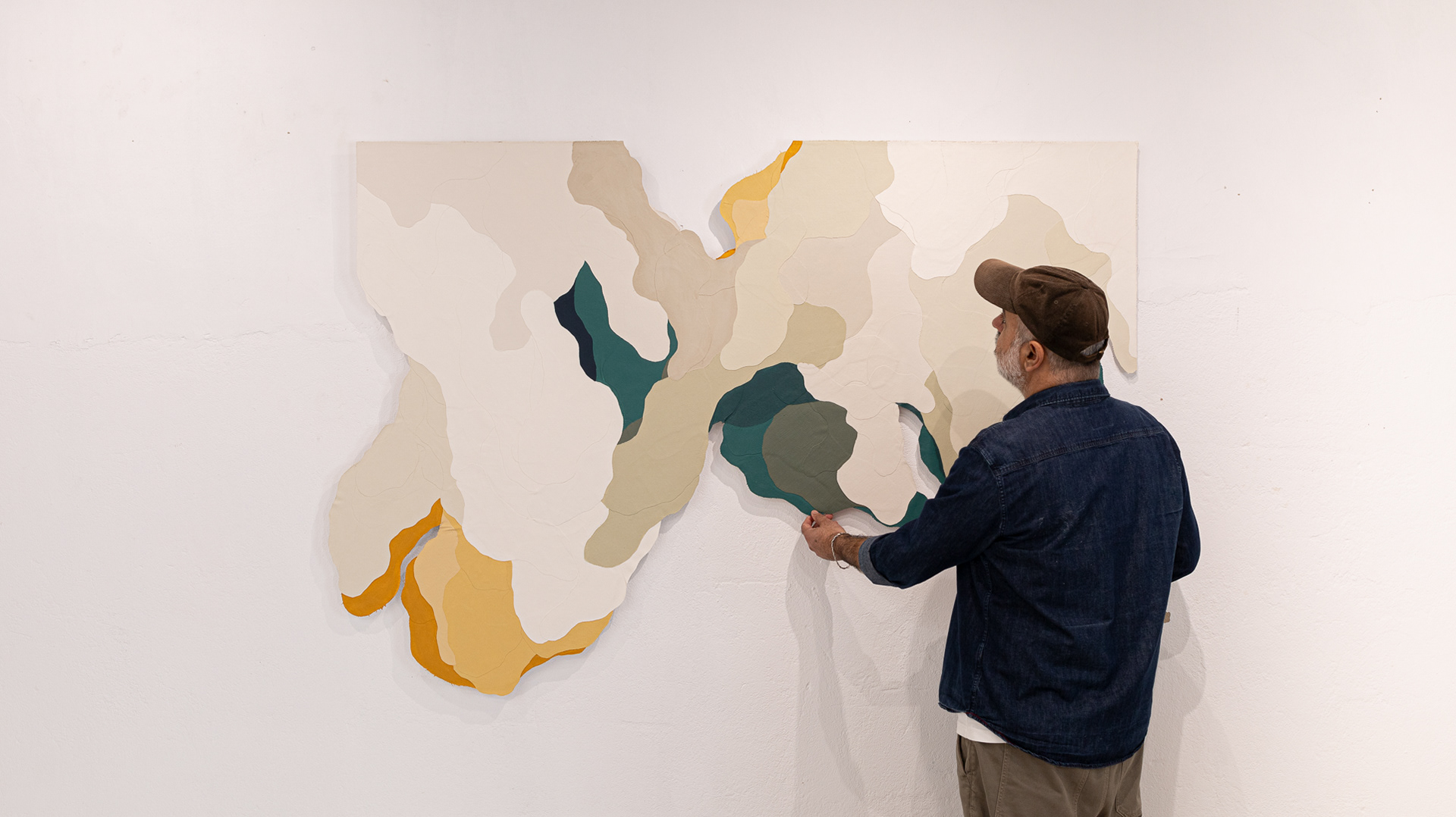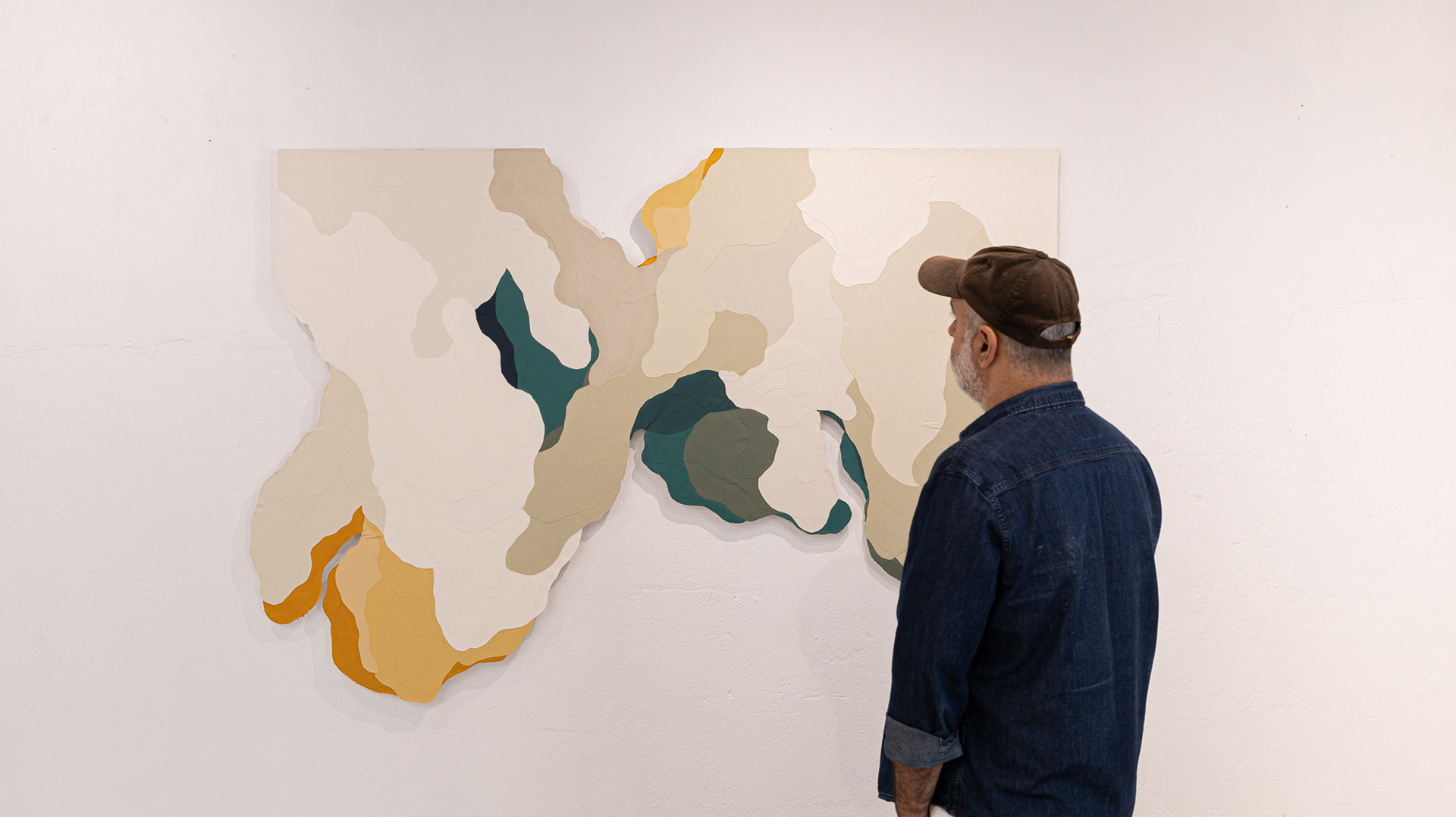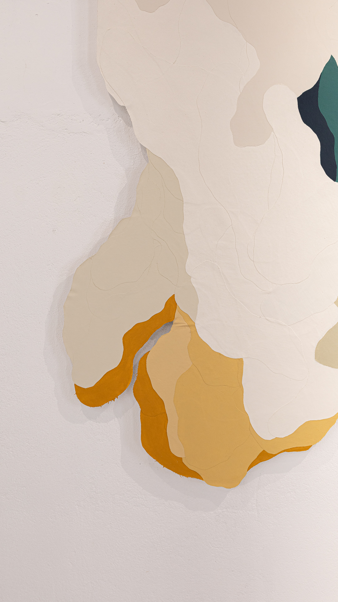 Tinta acrílica, têmpera vinílica e gesso acrílico sobre colagens de tela de algodão e estopa de linho. Montada numa estrutura de madeira.