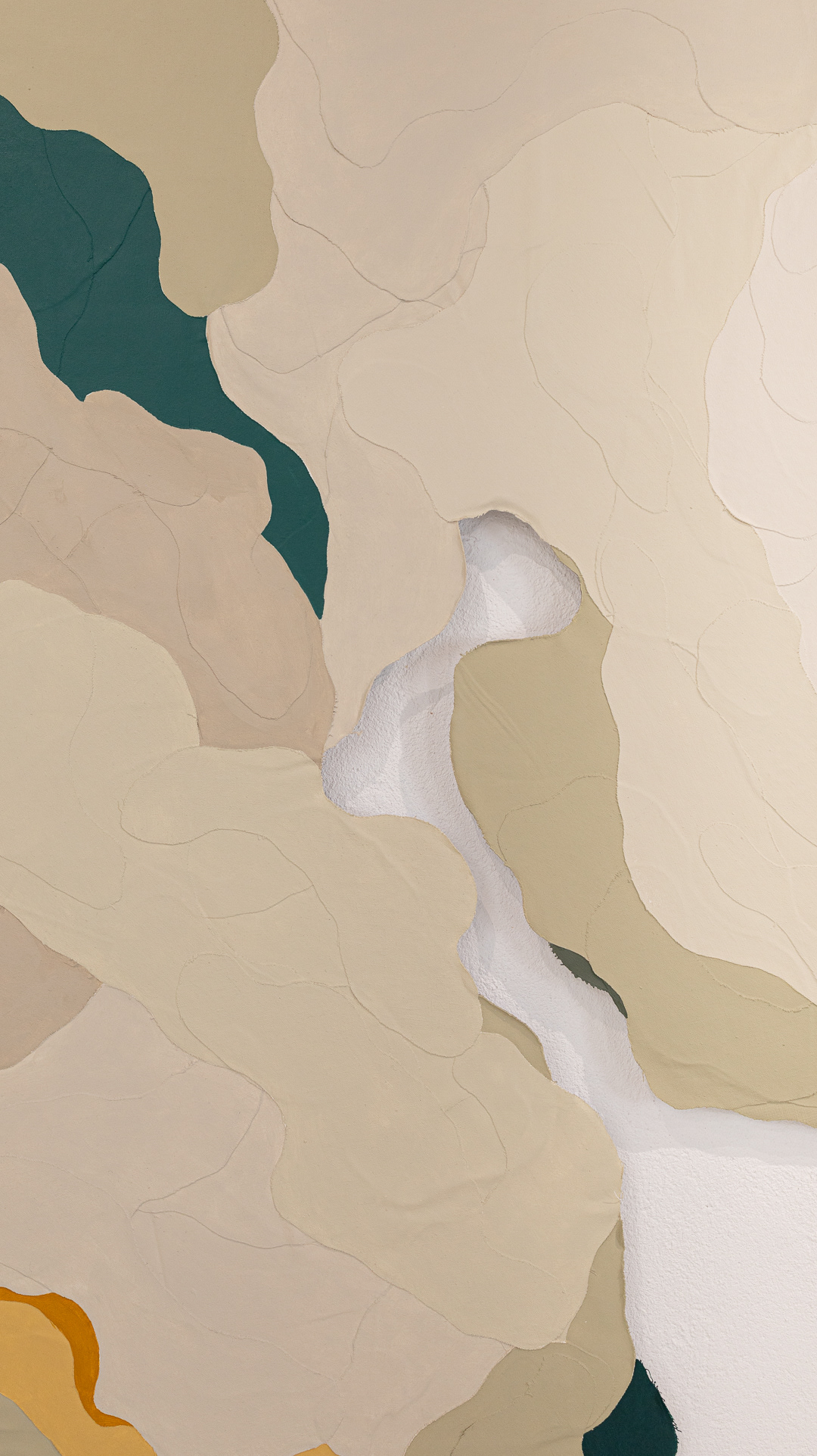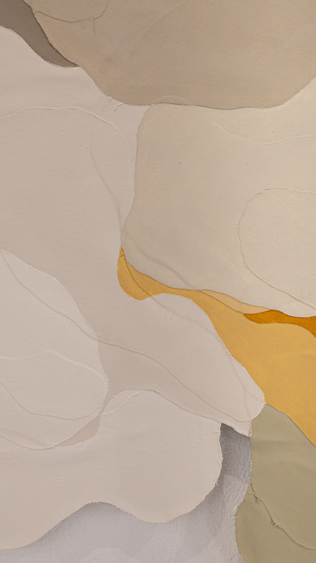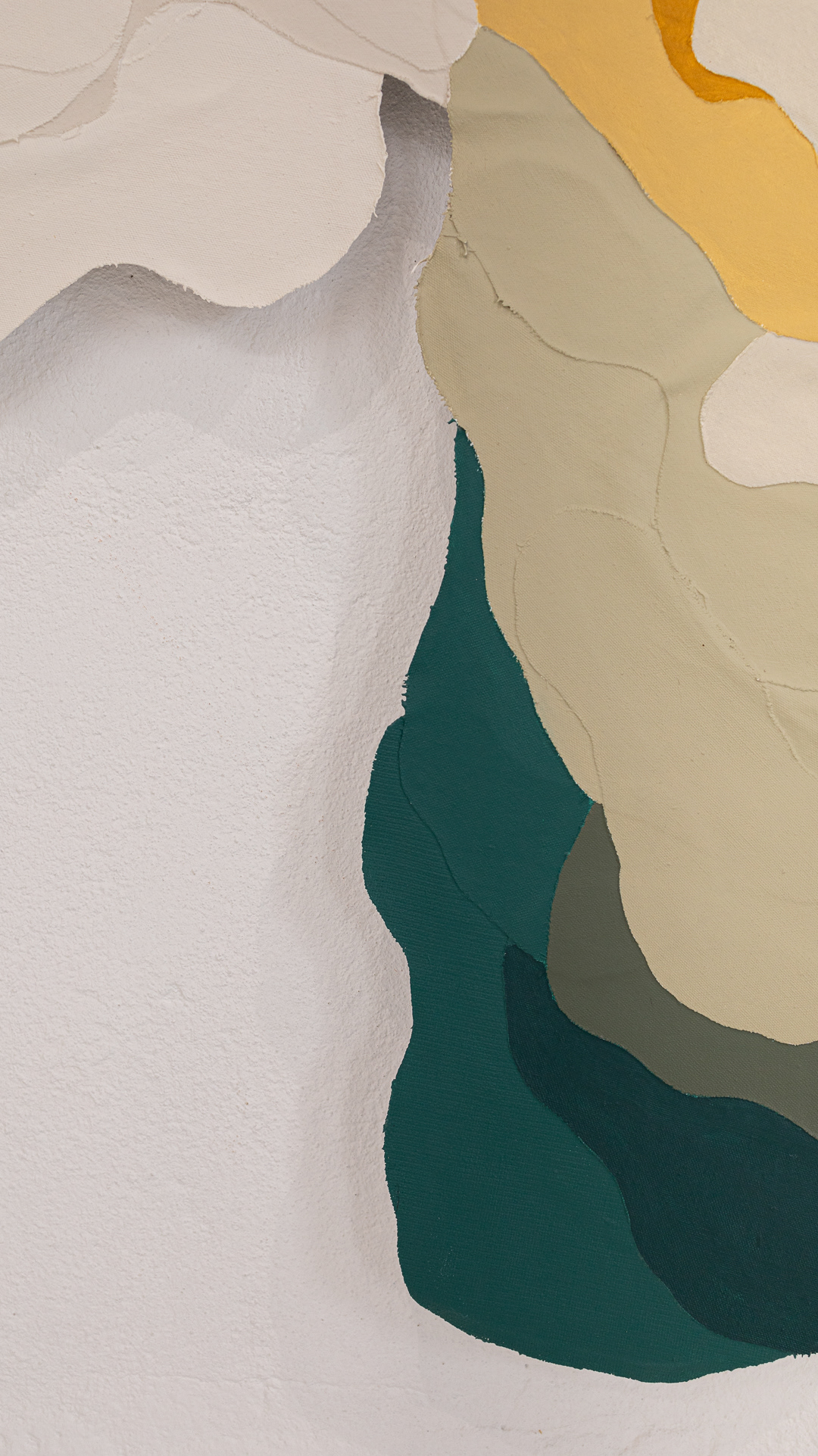 Tinta acrílica, têmpera vinílica e gesso acrílico sobre colagens de tela de algodão e estopa de linho. Montada numa estrutura de madeira.