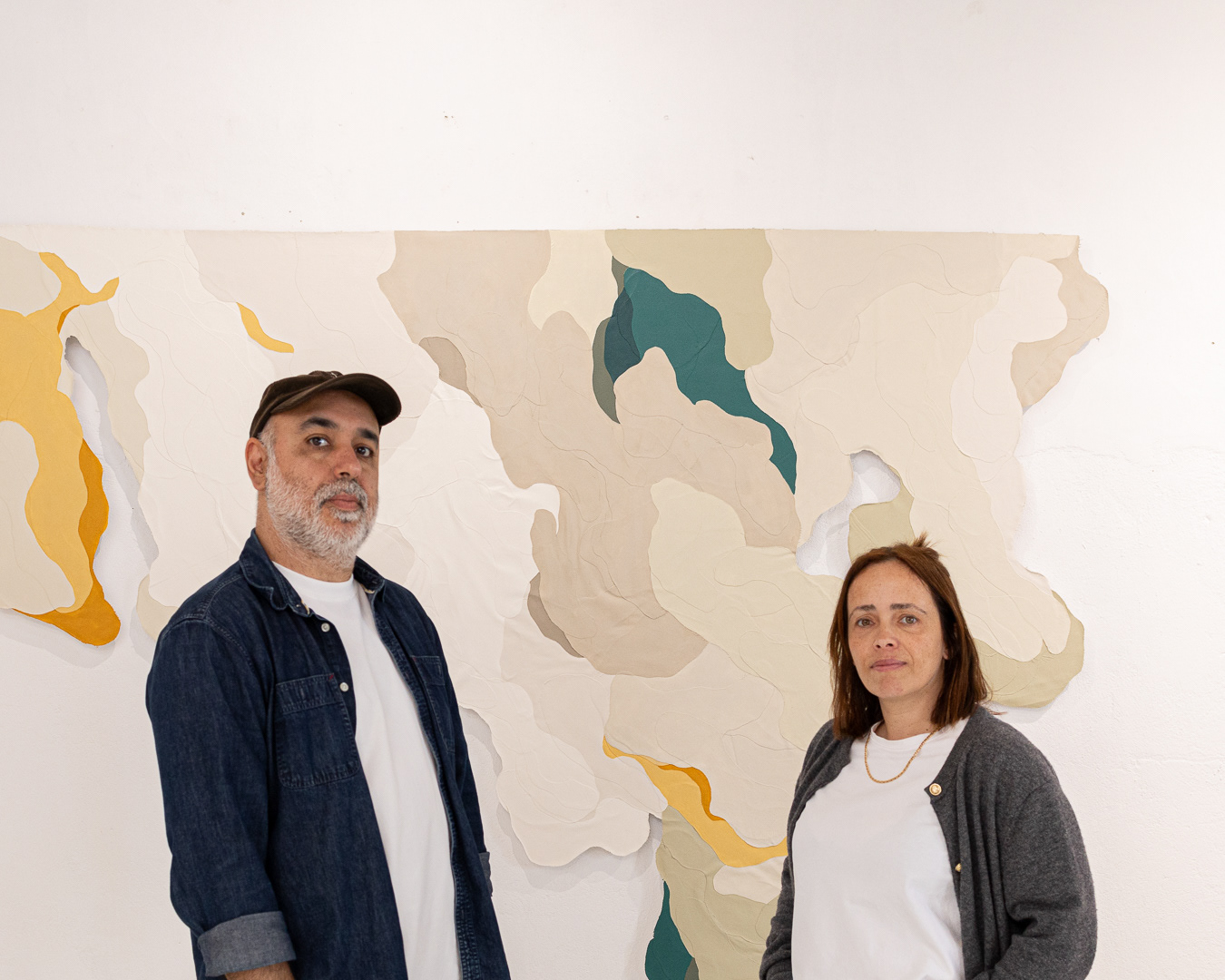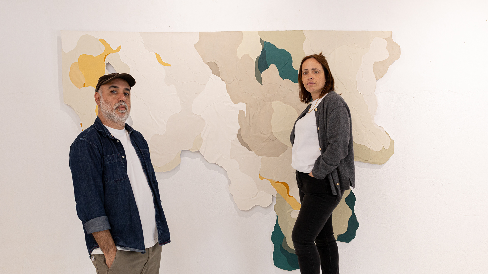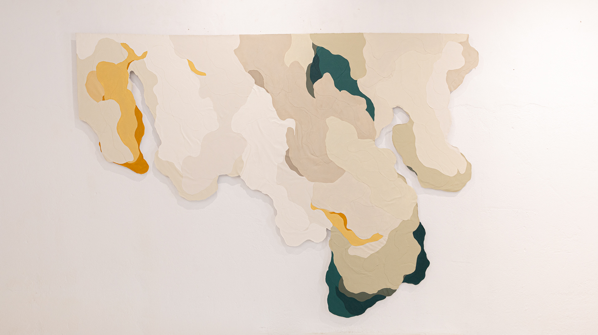 Tinta acrílica, têmpera vinílica e gesso acrílico sobre colagens de tela de algodão e estopa de linho. Montada numa estrutura de madeira.