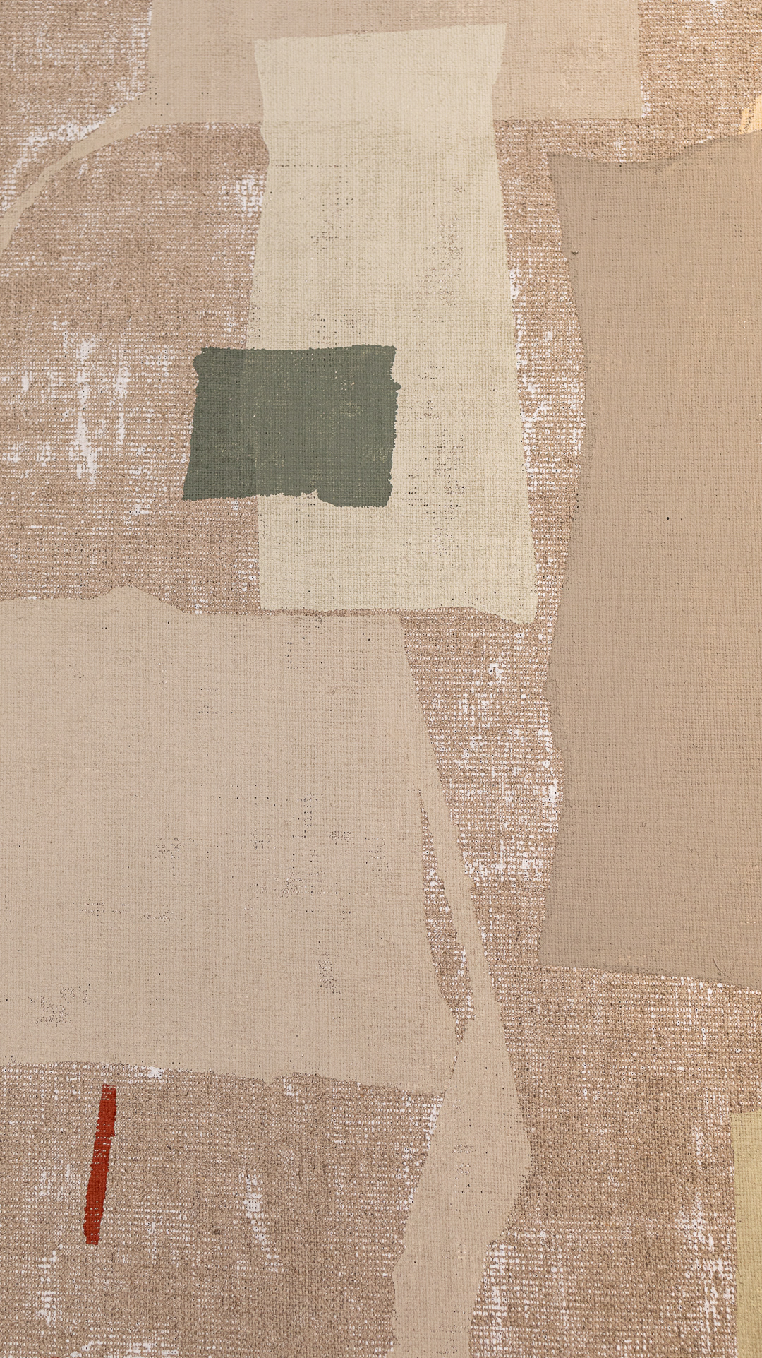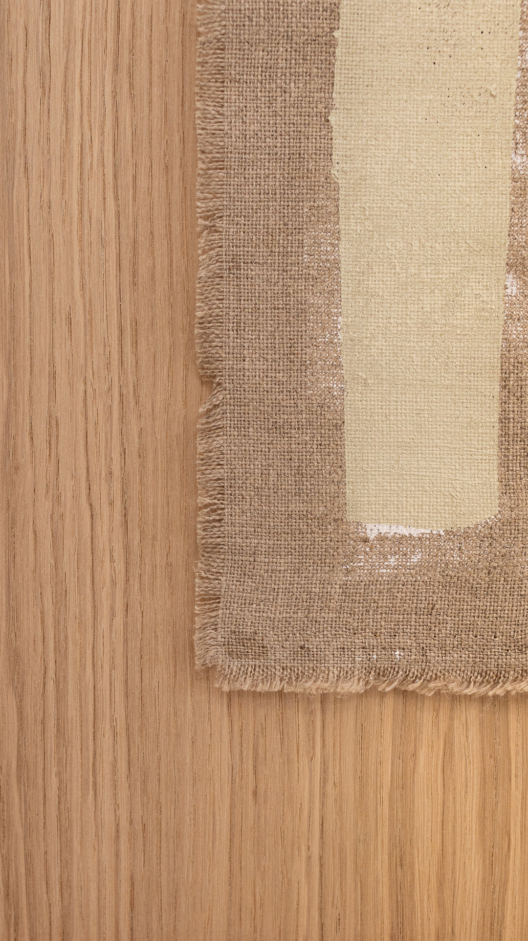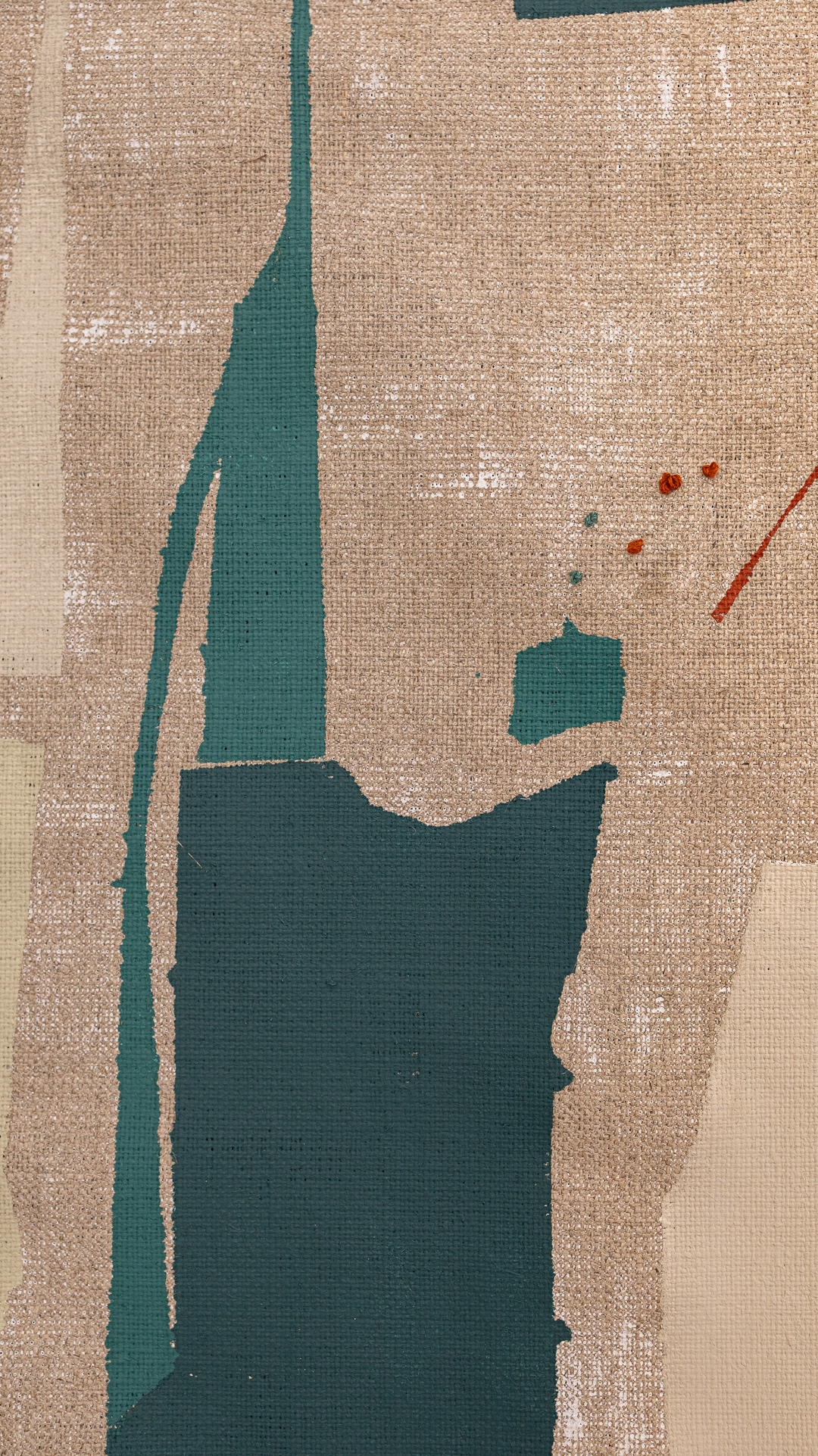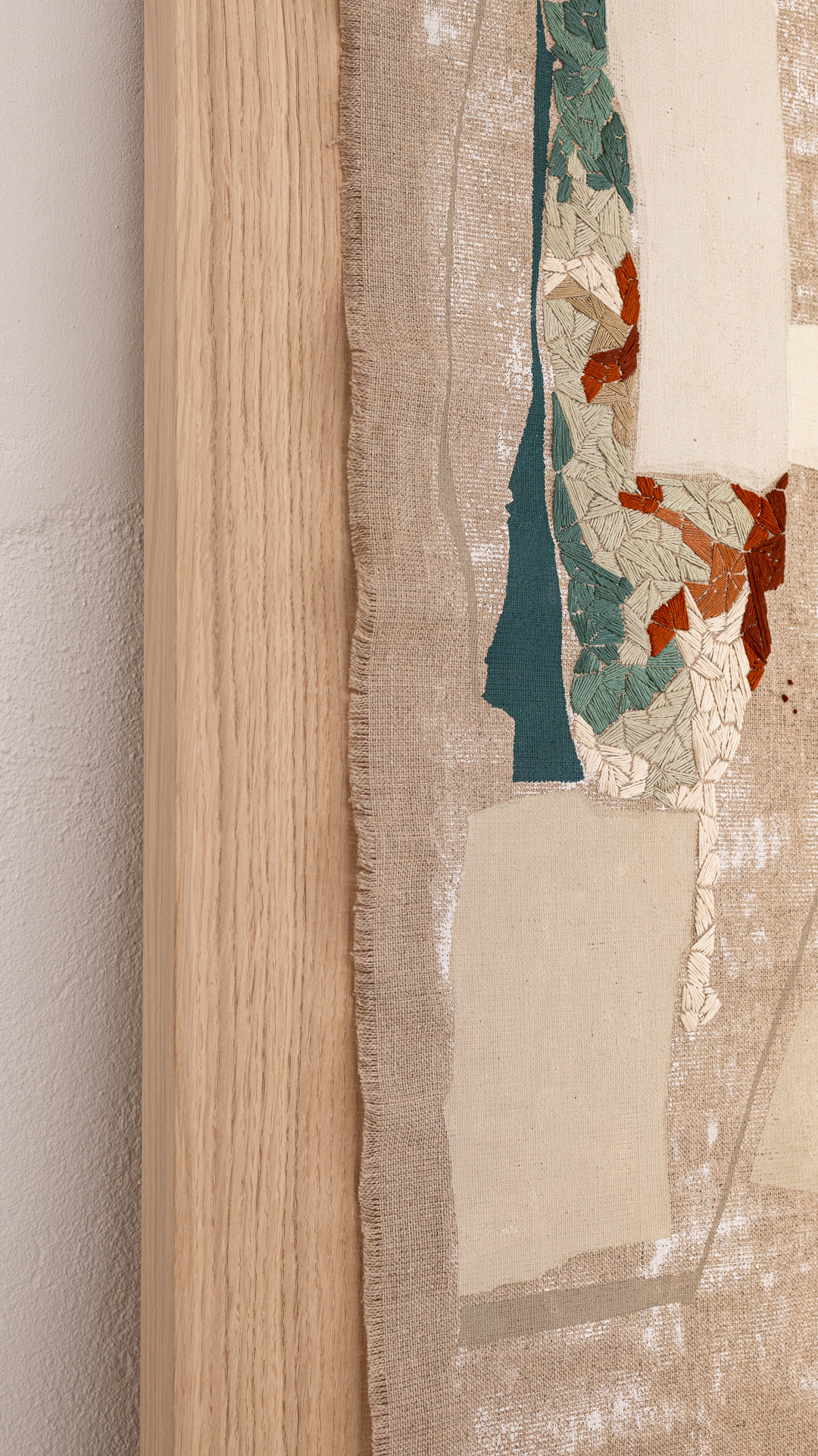 Tinta acrílica, têmpera vinílica e bordados com fios de algodão sobre linho.