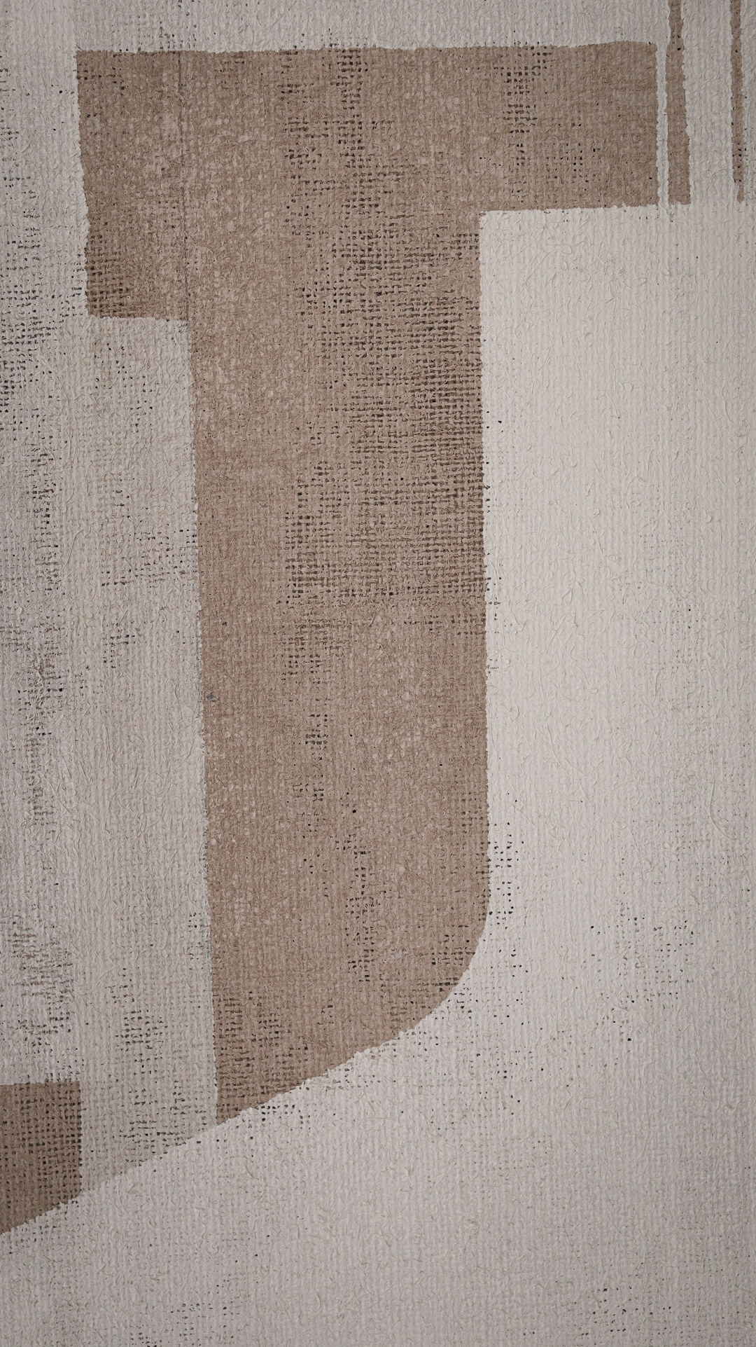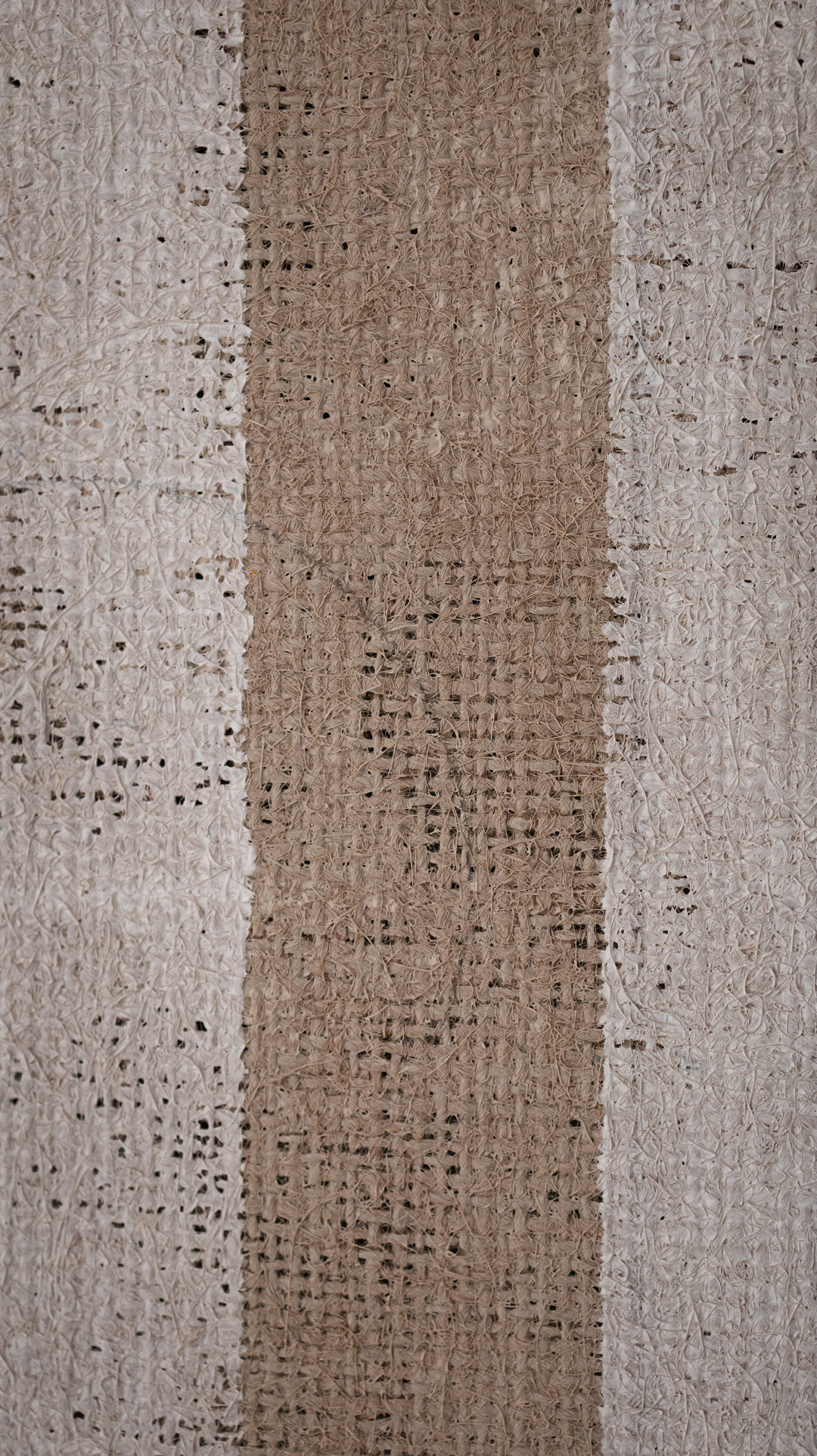 Tinta acrílica, têmpera vinílica, gesso e lápis de carvão sobre juta de algodão esticada em bastidor de madeira.