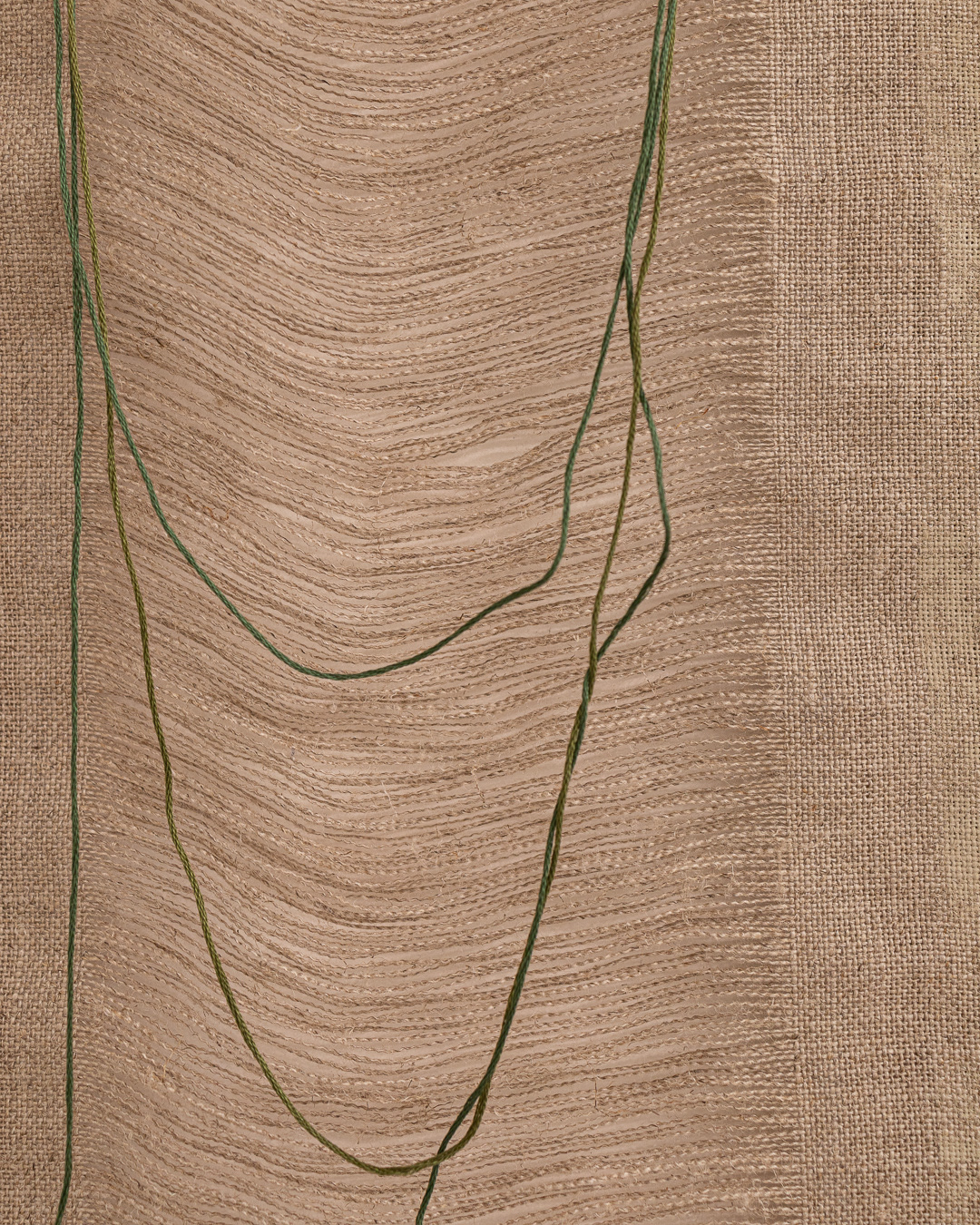 Tinta acrílica, têmpera vinílica e bordados com fios de algodão sobre linho